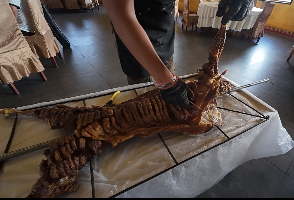 傍晚抵達壩上草原,辦理入住后迎來了隆重的歡迎晚宴——烤全羊安排上!