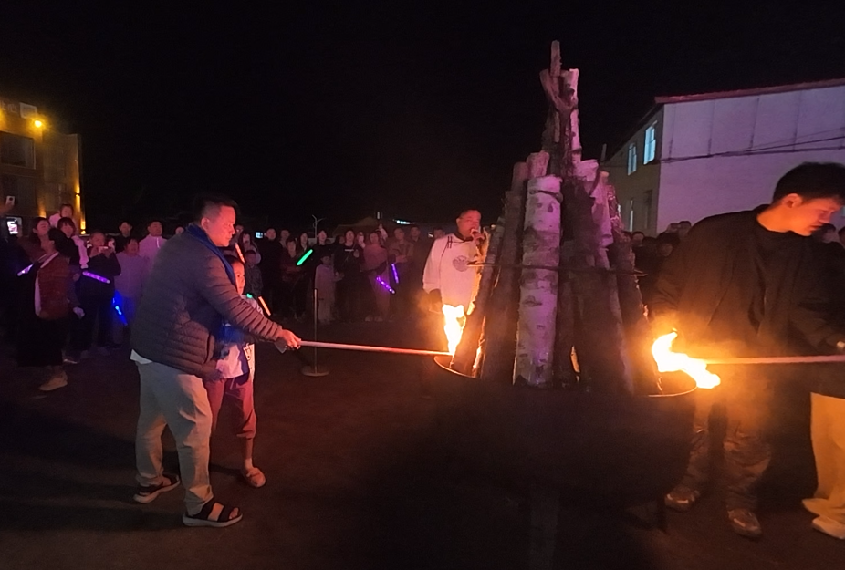 火光升騰,領(lǐng)導豪飲馬奶酒,全員圍火轉(zhuǎn)圈起舞,點燃夏夜熱情!