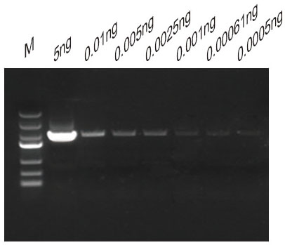 10K質(zhì)粒DNA可擴(kuò)增的濃度極限為:0.0005ng |