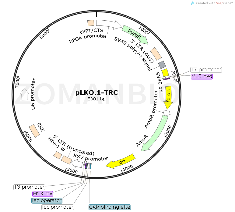 產品名稱:pLKO.1-TRC(別名pLKO.1)