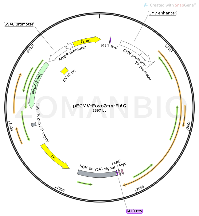 ZK6725 pECMV-Foxo3-m-FLAG小鼠基因質(zhì)粒.txt