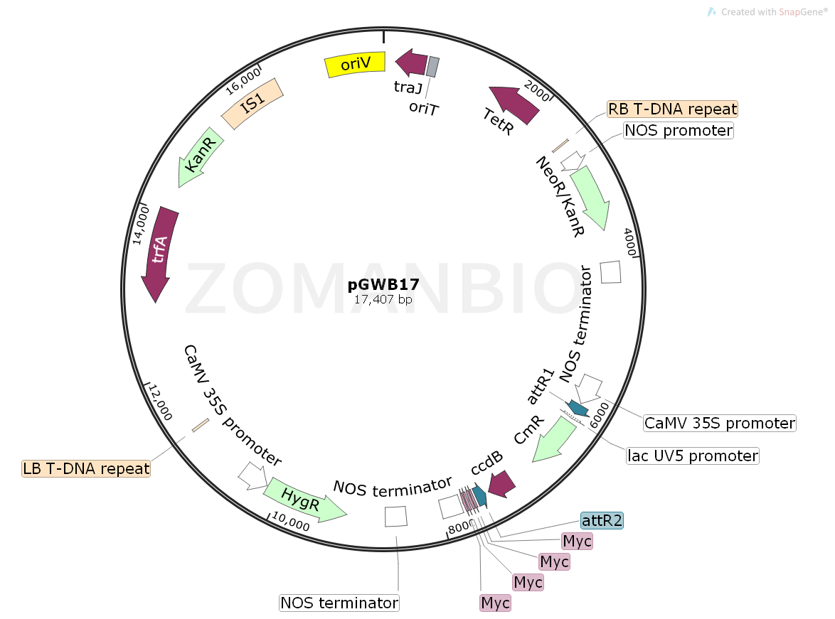 pGWB17是一個(gè)GateWay系列的植物表達(dá)質(zhì)粒。